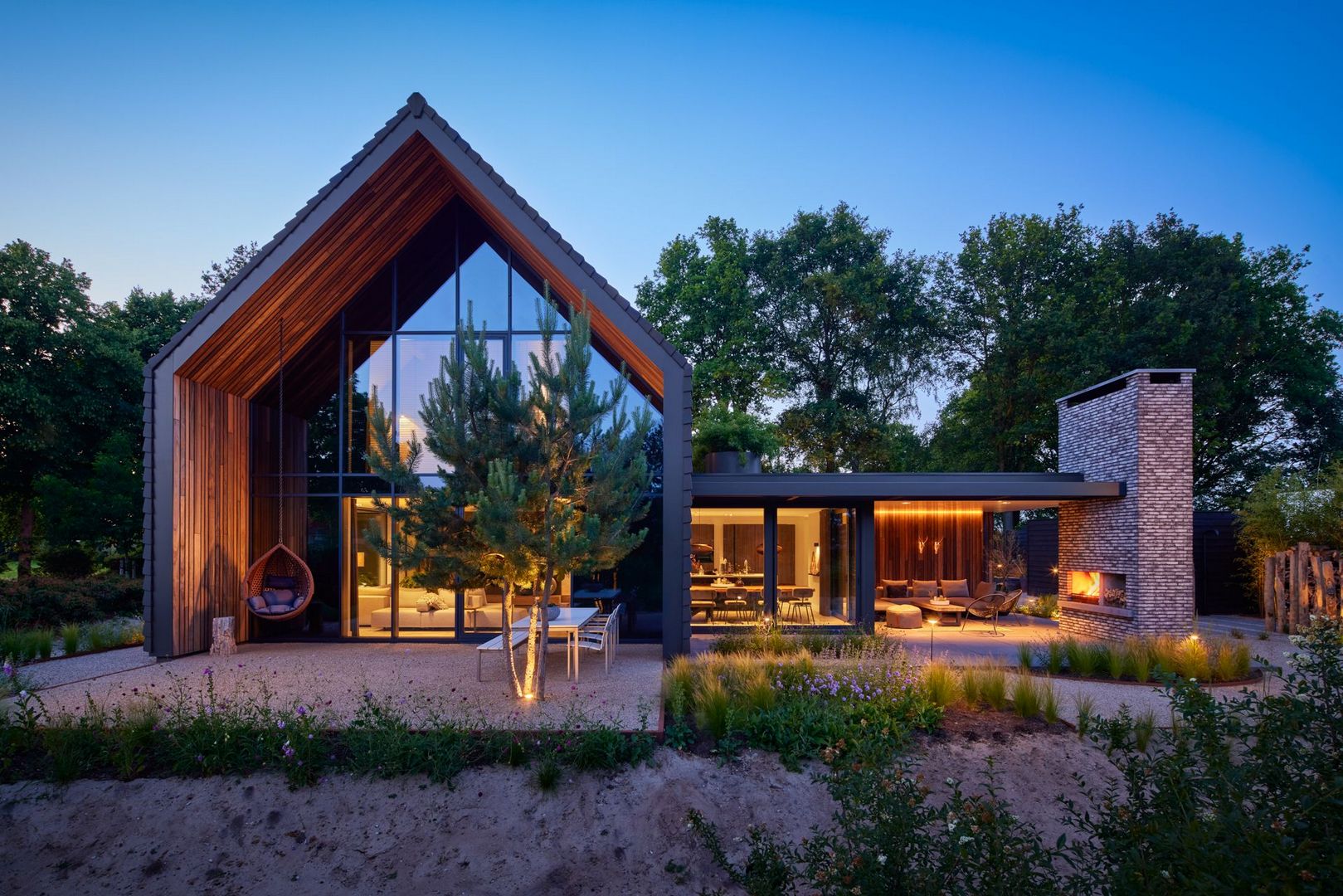 Deze eigentijdse woning in Uden combineert moderne architectuur met warme natuurlijke materialen. Het ontwerp focust op openheid, licht en een sterke verbinding met de omliggende natuur. De strakke lijnen, doordachte zichtassen en zorgvuldig gekozen details creëren een woning die rust en verfijning uitstraalt. Helemaal afgestemd op de wensen van de bewoners.